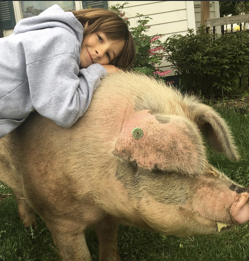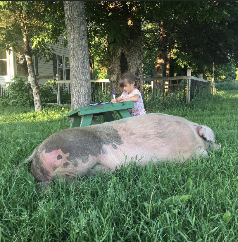 If you are new to Raising a Farmer you may have noticed some pictures of a large pig roaming around our farm. His name is Hans and he is living his best life.