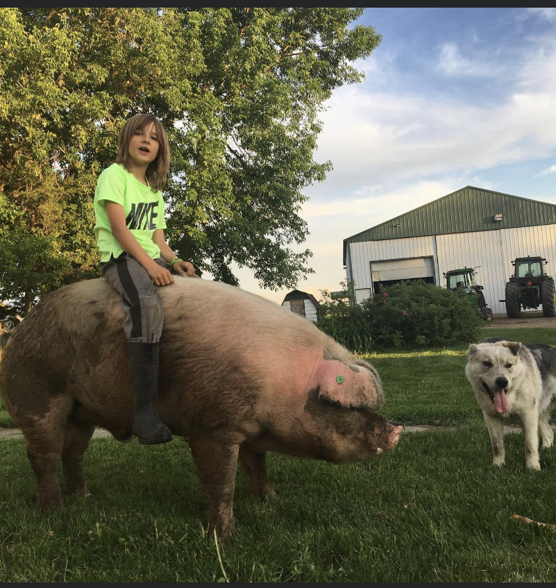 The story of Hans. Hans started as a 4H Swine Market Project for Everett in 2018. For many years Everett had shown dairy animals at the Morrison County Fair. Some of these animals he would take year after year. Market animals are different. For market animals, every year you take a new animal because their purpose is for market (to eat). Everett was on the fence for a couple years about showing market animals. Everett bonds with his animals and showing market animals is different. I told him when he was ready we would get him a pig.